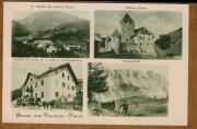 Abstract: Dolomiten - Gruss aus Piccolein (Tirol), St. Martin mit Schloss Thurn, Gasthof Piccolein, k. k. Post u. Telegrafenamt, Kreuz-Kofel