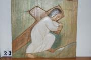 Abstract: Rilievo in legno intagliato e parzialmente dipinto: raffigurazione di Gesù che porta la croce.