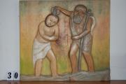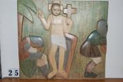 Abstract: Quadro in rilievo scolpito in legno e parzialmente dipinto: raffigurazione di Gesù, spogliato, su suo capo e' posta una corona di spine. Alla sua destra c'è un soldato con un martello, a sinistra una figura maschile con un mantello in mano.