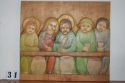 Abstract: Quadro in rilievo scolpito in legno e parzialmente dipinto: rappresentazione di Gesù con i tre apostoli Pietro, Giacomo e Giovanni, nonché i profeti Elia e Mosè.
