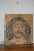 Abstract: Rilievo in legno intagliato e parzialmente dipinto: ritratto a mezzo busto di Gesù.