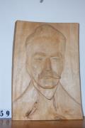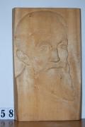 Abstract: Rilievo in legno intagliato: ritratto a mezzo busto di un uomo anziano con la barba.