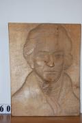 Abstract: Quadro a rilievo in legno intagliato: ritratto a mezzo busto del musicista e compositore Wolfgang Amadeus Mozart.
