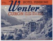 Abstract: Opuscolo pubblicitario: "Hotel Pensione Wenter, Curon Venosta, Italia, Alto Adige". Proprietario: J. Innerhofer dal 1938. All'interno, sono presenti motivi/temi grafici di vacanzieri (stagioni: estate - inverno) che ricordano fortemente Lenhart.