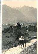Abstract: Cartolina in bianco e nero. "Scena presso Merano" (Nr. di serie 5201). Timbro postale: 28.5.29. La cartolina è indirizzata a Josef Innerhofer Hotel Wenter "Kurona (?) Lago di Resia". Il testo recita: "Caro Sepi! Dato che ho una settimana di ferie, vorrei chiederle se posso venire su per due giorni, ma solo se non le dispiace e purchè io non sia d'intralcio. Vi prego di darmi subito una risposta. Un saluto a tutti voi Heddi". Scritto in corsivo. (Numero di serie 5201).