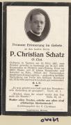 Abstract: Sterbebild von P. Christian Schatz O. Cist. Geb. am 15.03.1867 in Tarrenz, gest. am 20.08.1929 im Stifte Marienberg mit Foto