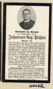 Abstract: Sterbebild von Johannes Nep. Pichler, Pfarrer i.R. Geb. am 17.04.1866 in St. Martin in Passeier, gest. am 10.01.1930 in Kurtatsch mit Foto