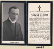 Abstract: Sterbebild von Johann Federer, Frühmesser in Latsch Geb. am 08.12.1893 in Unterinn am Ritten, gest. am 06.09.1932 mit Foto