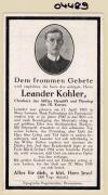 Abstract: Sterbebild von Leander Kohler, Chorherr des Stiftes Neustift und Theolog des III. Kurses Geb. am 11.04.1910 in Welschnofen, gest. am 27.03.1935 mit Foto