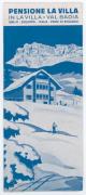 Abstract: 1 Faltprospekt, 2teilig, blaugetönte Fotografie u. graf. Darstellung, La Villa, Gadertal, Pension La Villa, mit 1 Fotografie der Ortschaft mit Bergpanorama, "Dir. Robert Schieder" durchgeschrichen, hs. ergänzt durch "Moroder", mit Anfahrtsskizze auf RS. Motiv: graf. Darstellung der Pension in Winterlandschaft mit Skifahrern.