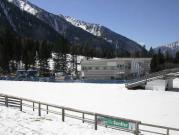 Abstract: Detail des Biathlonzentrums in Antholz-Obertal mit Pressehäuschen?