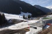 Abstract: Detail des Biathlonzentrums in Antholz-Obertal, mit Loipe, Verwaltungsgebäude, Pressezentrum, Parkplatz