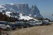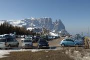 Abstract: Blick von Kompatsch auf den Schlern, im Vordergrund gefüllter Parkplatz