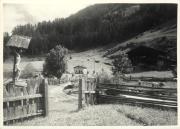 Abstract: Motiv mit Kruzifix im Schnalstal, gegen Bauernhof, unbestimmter Ort.