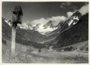Abstract: Blick von einem Standort beim Eishof ins obere Pfossental in Richtung Eisjöchl (2908 m.). Im Hintergrund die Hohe Weiße (3281 m.) und rechts die Schwarze Wand (3166 m.).