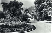 Abstract: Abschnitt des Meraner Kurparkes, mit Blumenbeet, gegen Kurhaus.
