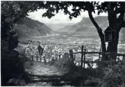 Abstract: Blick von einem Feldweg mit Bildstock auf Meran, gegen Süden.