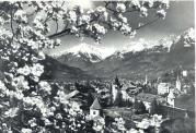 Abstract: Blick von Marling auf den Meraner Pferderennplatz, auf die Ifingerspitzen.